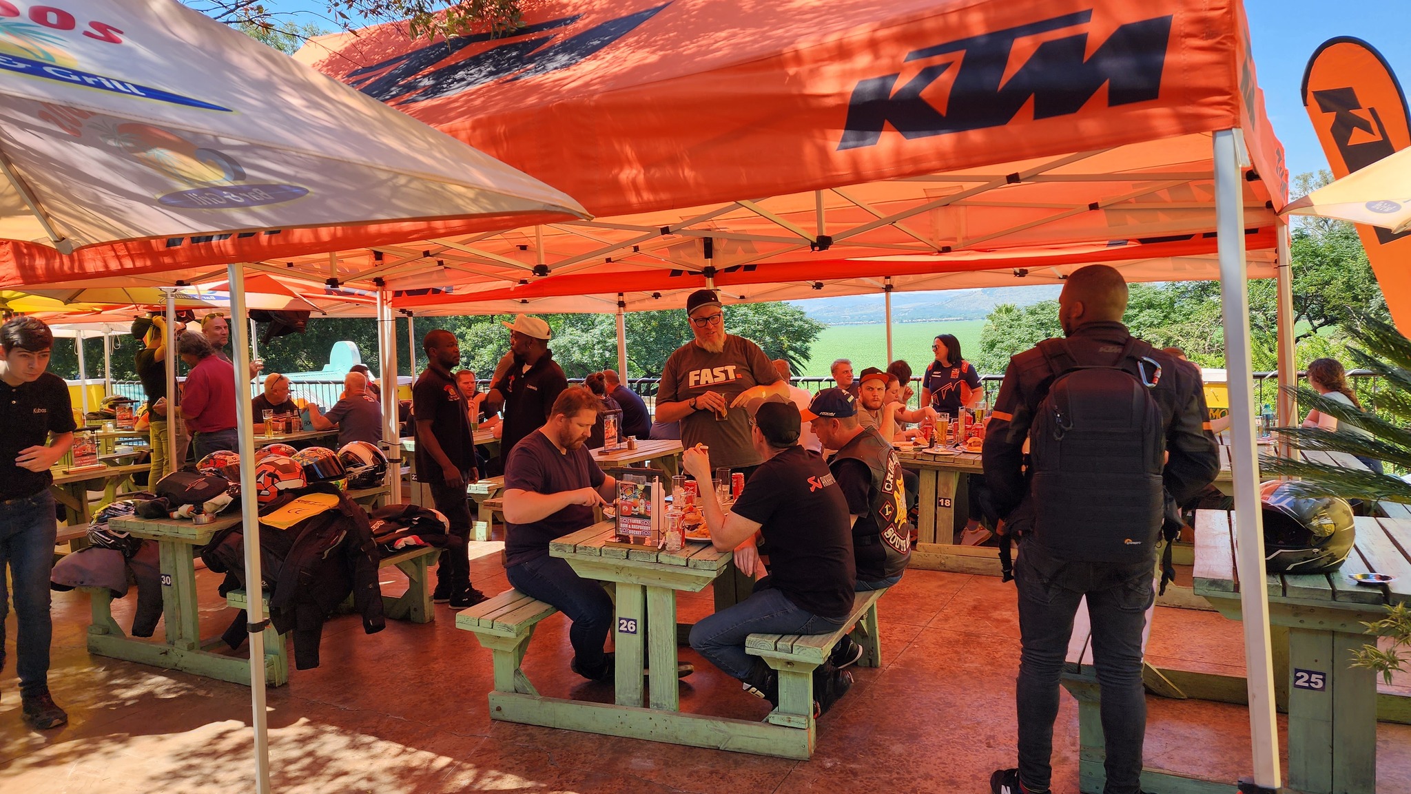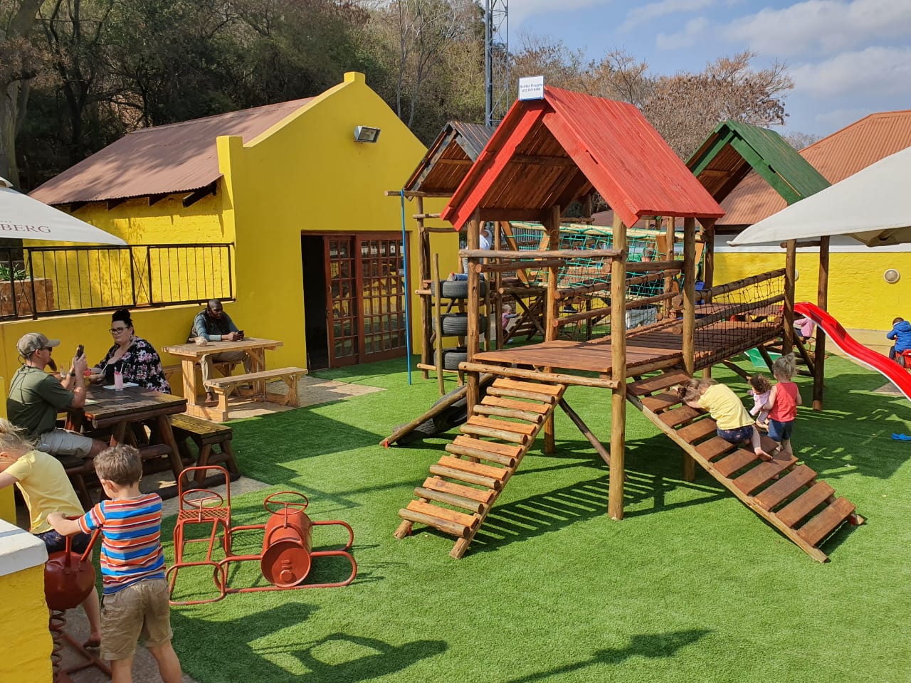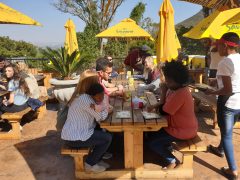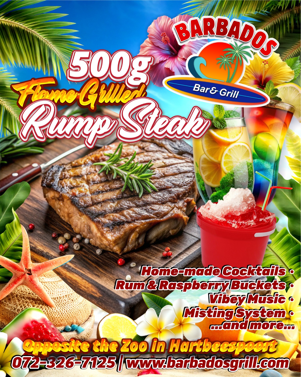 Barbados Bar and Grill is a Caribbean-themed restaurant in Hartbeespoort, offering a variety of dishes like eisbein, calamari, and burgers, with stunning views of the dam and mountains.